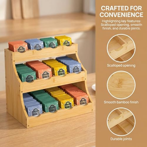 - مستدام وثابت مصنوع من الخيزران الطبيعي: مصنوع من الخيزران القوي والصلب، منظم الشاي هذا متين يمكن تنظيفه بسهولة ويمنح أي غرفة دافئة وسحرًا طبيعيًا