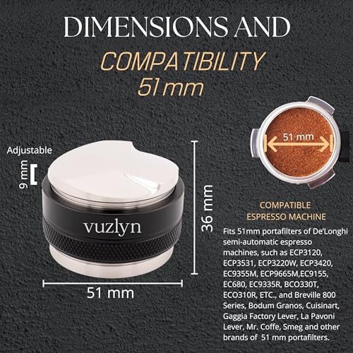 - COMPATIBILITY: This tamper is designed for use with 51mm Delonghi portafilters. Please check the compatibility of your portafilter before purchasing.