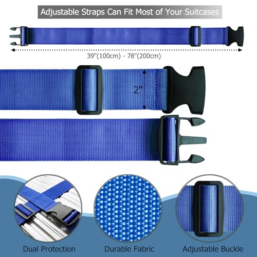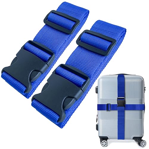 VVEIFO - أحزمة شنط سفر عريضة قابلة للتعديل من في فيفيو، مناسبة لاكسسوارات السفر، أزرق غامق، 2 م × 5 سم، قطعتان