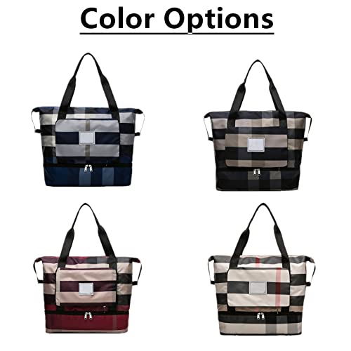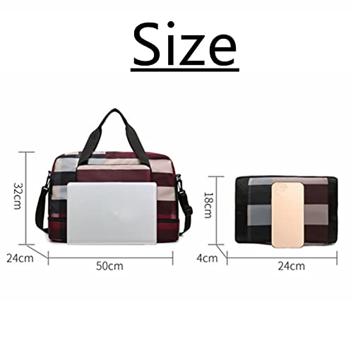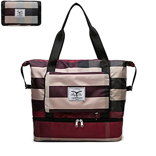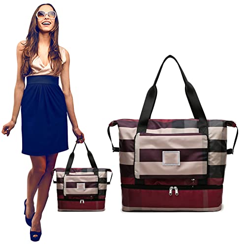 vvovvug - Foldable Dry/Wet Separation Travel Bag, Travel Duffle Bag, Women's Sports Gym Tote, Expandable Large Capacity & Lightweight Folding Dry and Wet Separation Travel Bag (Wine Red)