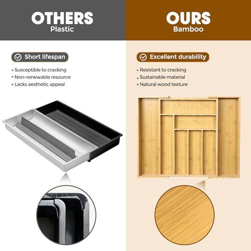 - Premium Natural Bamboo Construction: Made from high-quality, sustainably sourced natural bamboo, these drawer organizers are durable and add a touch of elegance to any kitchen, bedroom, or office space