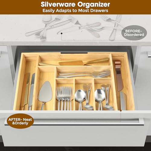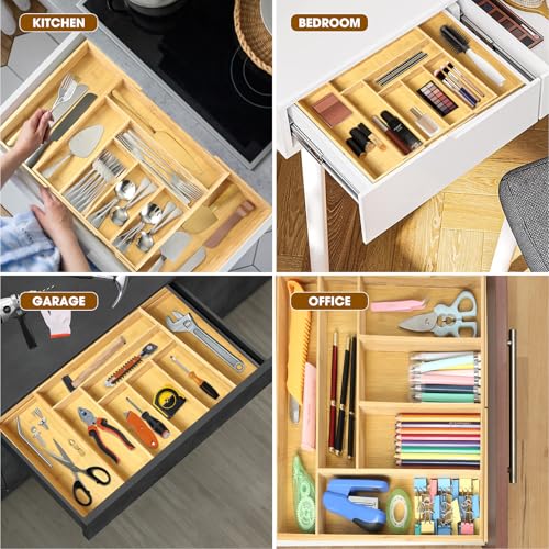 - Versatile and Stylish Storage Solution: Ideal for kitchens, , bedrooms, study rooms, offices and garages, these utensil drawer organizers combine functionality with a sleek, natural design to keep your space clutter-free and visually appealing