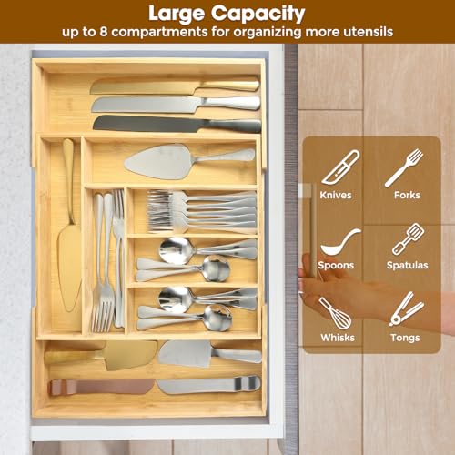- 8 Compartments for Multipurpose Use: Designed with 8 compartments, these bamboo drawer organizers are perfect for storing and organizing cutlery, jewelry, stationery, tools, and more, keeping your items neatly separated and easily accessible