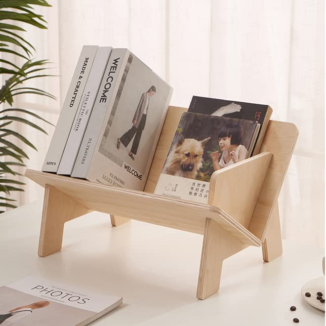 W WWEENUO - Wooden Desktop Bookshelf, Tabletop Tilted Bookcases Desk Organizers and Storage Rack for CDs/Magazine/Books