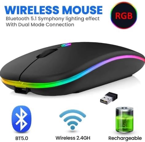 Generic - W10 Wireless Bluetooth Mouse – Dual Mode (2.4GHz USB Receiver + Bluetooth), Rechargeable, Silent Click, RGB Backlight – Black