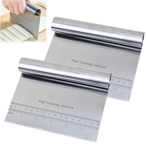 WAAZI - Dough Scraper Stainless Steel 2 Pieces Dough Cutter Dough Card Stainless Steel Kitchen Scraper Dough Spatula with Wooden Handle for Cutting Dough, Pizza, Nougat (Metal)