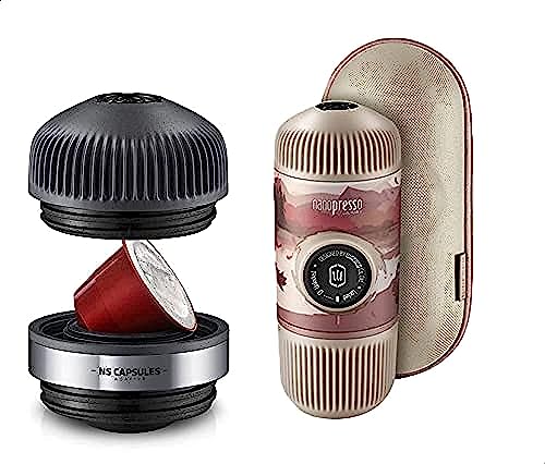 WACACO - ماكينة تحضير قهوة نانو بريسو يدوية مع جراب حماية جرني فل بريك بيج ومحول كبسولات ان اس لماكينة اسود من واكاكو اكريلونيتريل بوتادين ستيرين