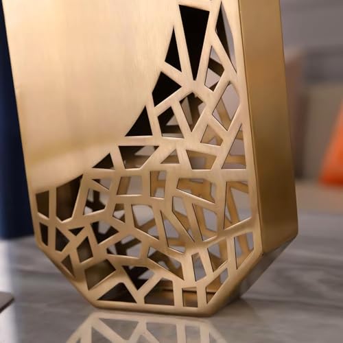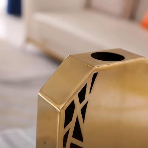 - Geometric Gold Vase - Made of high quality metal, this gold vase is durable and stylish. The gold material gives it a luxurious look while being durable and easy to maintain. The soft shine contrasts with cutting geometric patterns, adding a modern touch to a timeless design. This vase fits perfectly in contemporary interior designs and more classic spaces.