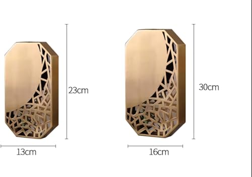 - PREMIUM STYLE METAL - Ideal for displaying flowers, can also be used as independent decoration in the living room, dining room, or office. This gold vase is perfect as a centerpiece or for decorating a piece of furniture. The dimensions of 9 x 5 x 16 inches allow them to be placed easily in different spaces, adding style without striking your decor.
