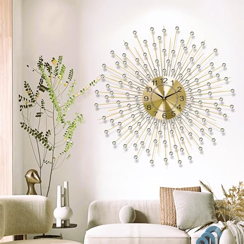 Egypt Valley Import & Export - ساعات حائط كبيرة ذهبية من وادي مصر الاستيراد والتصدير عصرية بدون تكتكة ثلاثية الابعاد، ساعات حائط مزخرفة هادئة لغرفة المعيشة وغرف النوم والمطبخ والمكتب، 65 سم