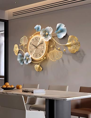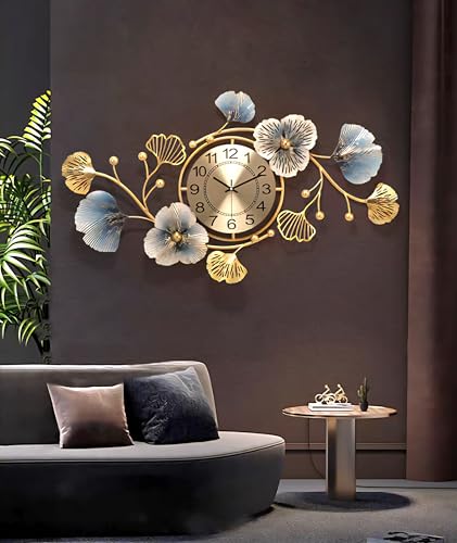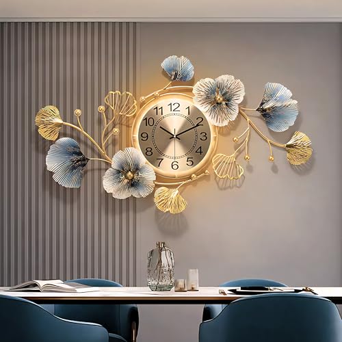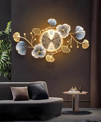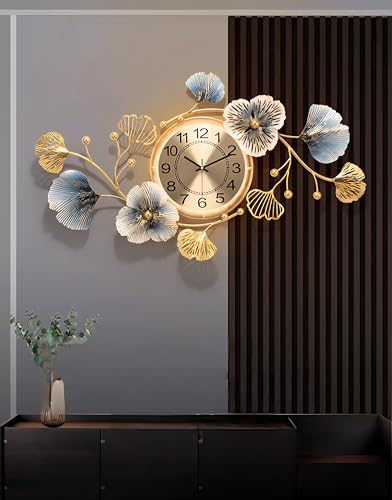 Egypt Valley Import & Export - ساعة حائط مضيئه بتصميم فاخر علي شكل اوراق الاشجار من وادي مصر الاستيراد والتصدير مقاس 43 × 83 سم معدنية صامتة لا تصدر صوت تكتكة عصرية لديكور المنزل وغرفة المعيشة والمكتب، تناظري