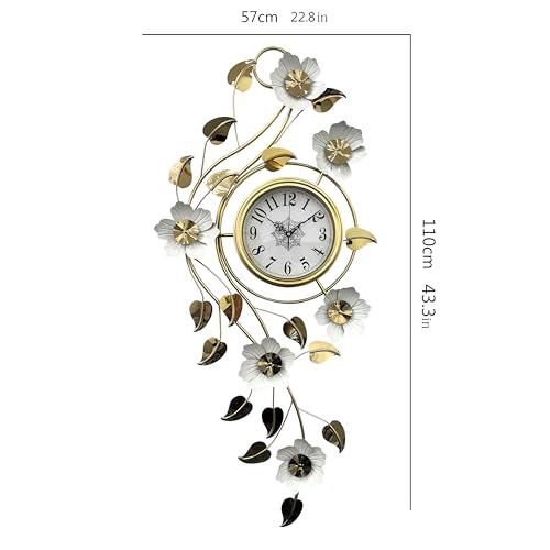 Egypt Valley Import & Export - Wadi Misr Import & Export Luxury Leaf Wall Clock 57 * 110cm Stainless Steel Silent Non Ticking Modern Home Decor Living Room Office Analog
