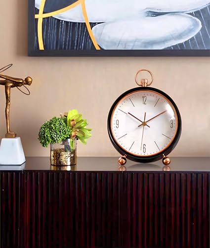 Egypt Valley Import & Export - Wadi Misr Luxury Import Export European Analog Desk Clock Creative Metal Base Table Clock Living Room Decor Silent Quartz Clock (Batteries Not Included) Size 68x23cm