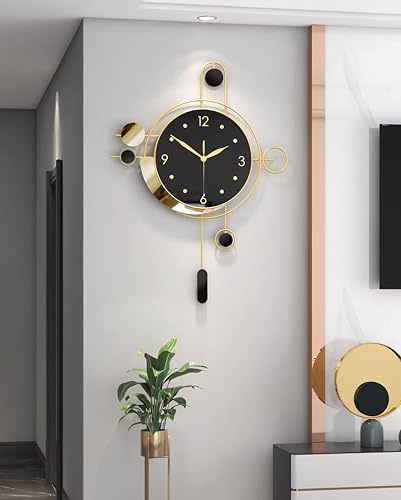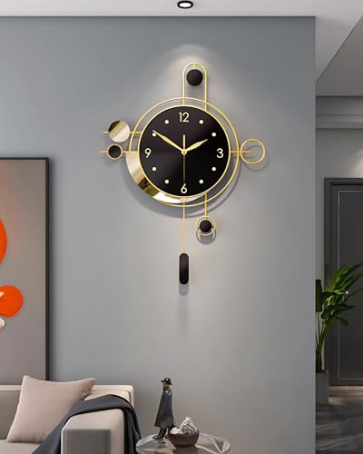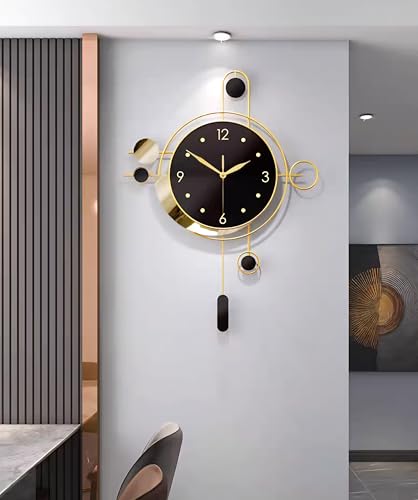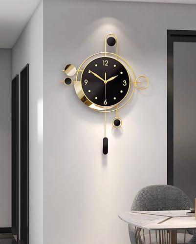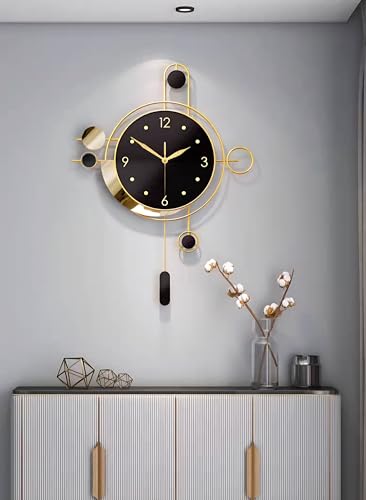 - 【METAL PENDLE WALL CURLER】- This wonderful pendulum wall clock features stunning gold/black contrast design with black metal enamel, gold Arabic numerals and clear black enamel hands that ensure exceptional readability for all ages, combining the charm of classic and modern simplicity. The sophisticated gold finish iron frame with reflective detailing add a luxurious accent piece to complement any home decor style.