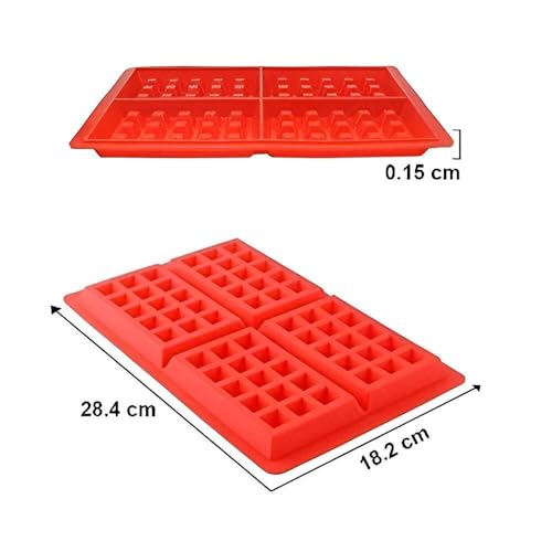 - Our silicone waffle mold is designed with four pockets to make baking, allowing you to make four standard sized cupcakes or waffles at a time. Each bar measures 11.2 inches long, 7.2 inches wide and 0.006 inches thick, making it the perfect size for your baking needs. This means you can make delicious treats for family gatherings or parties with no hassle of multiple batches.
