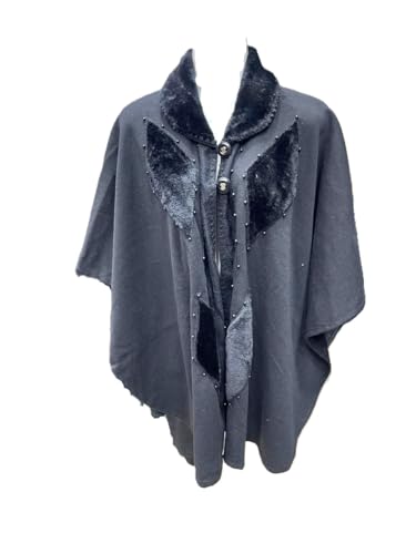 Generic - Wajj Women's Soft Wool Shawl Long Elegant Shawl Collar Button with Velvet Embroidery