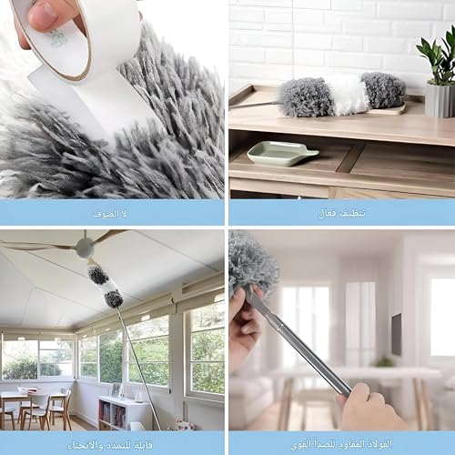 - The cleaning duster features a highly versatile, bendable retractable pole that can be adjusted between 30 to 100 inches, making it suitable for reaching high areas like ceilings and fans without the need for ladders or unsafe chairs. This feature allows users of all sizes, including both adults and children, to safely and effectively clean those hard-to-reach spaces in their homes, promoting a safer cleaning experience.