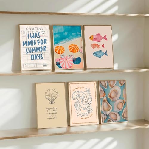 - Beachy Creative Gifts:These beach, seashells and oyster shell wall decor prints make a thoughtful gift for teenage girls, granddaughters, friends or neighbours,coastal decor lovers or anyone who enjoys preppy and beachy style room decor. For living room, bedroom, apartment, dorm, office, beach house, coastal dining room, or granddaughter's room, this preppy beach wall art set will easily enhance any environment.