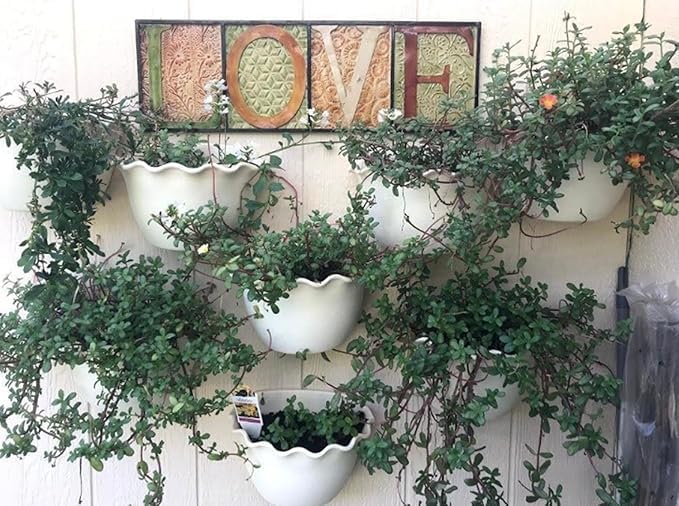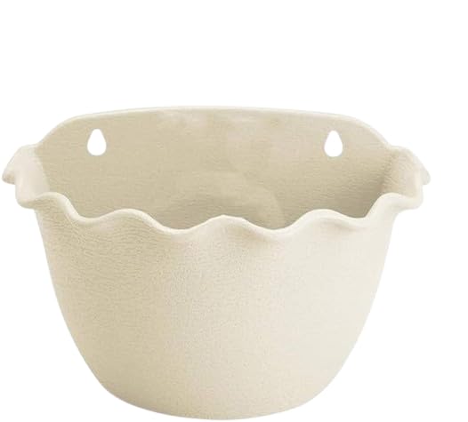 MERIDIAN HYDROPONICS - Wall Hanging Flower Planter Pot, Hanging Garden Pots, Hanging Planter Cuts, Indoor or Outdoor Plant Pot, Wall Hanging Plant Chalet, Plastic Pottery Wave Edge Gardening Container - Beige