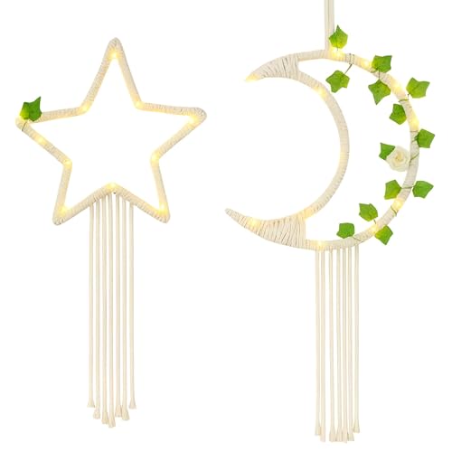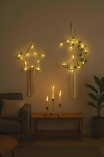 Generic - Wall Hanging - Star and Moon Shaped Decorative Piece, Artificial Decoration, Decoration, 6 Warm LEDs, Suitable for Bedrooms and Living Spaces