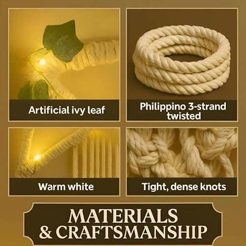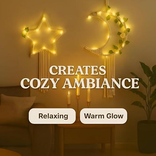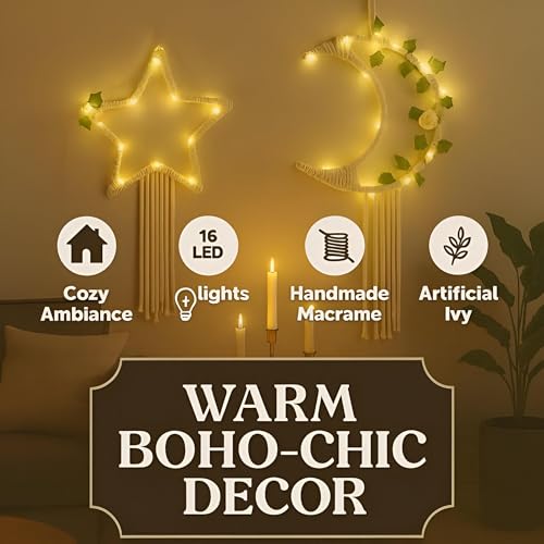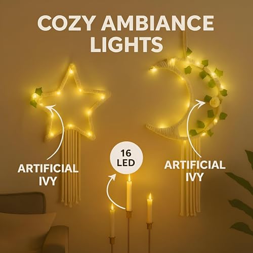 - Featuring elegant natural-colored cotton rope, delicate fringe tassels, and intricate moon and star designs, these wall hangings are enhanced with artificial ivy leaves and floral accents that evoke a natural, bohemian vibe, making them ideal for adding character to any wall.