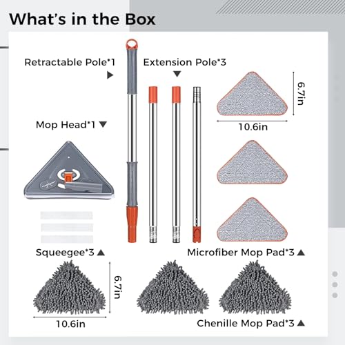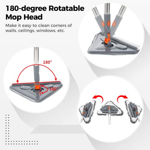 - 【رأس مساحة موب قابل للدوران بزاوية 180 درجة】تم تصميم رأس المساحة موب المثلثة بموصل عمود يمكن تدويره بزاوية 180 درجة لأعلى وأسفل، يسارًا ويمينًا، ليصل بسهولة إلى زوايا الحائط والأسقف والنوافذ والمناطق الأخرى التي يصعب تنظيفها. بالإضافة إلى ذلك، تتوفر 3 مساحات مطاطية للتركيب على رأس المساحة موب لإزالة الماء، ومنع الانزلاق وبقع الماء