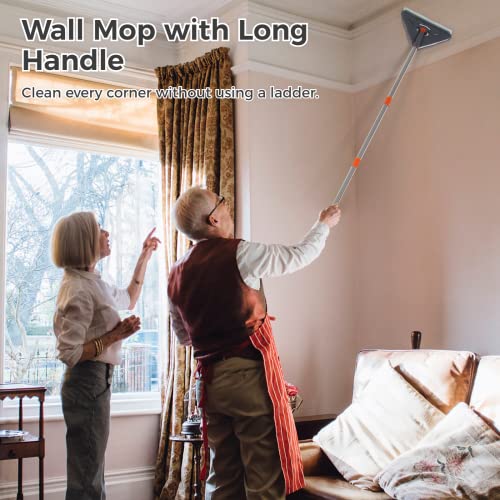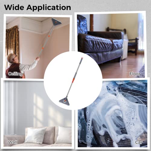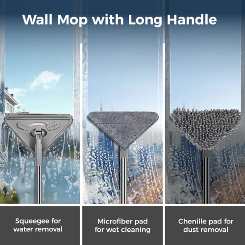 BATTIPAW - مساحة موب للحائط والسقف مع عمود تمديد 63 سم إلى 2.8 متر مقبض طويل قابل للتعديل مع 6 وسادات مساحة موب مثلثة بديلة للاستخدام رطب وجاف رأس مساحة موب قابل للدوران 180 درجة مع 3 ممسحة مطاطية للسقف والحائط