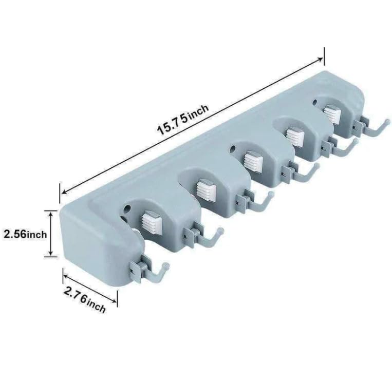 Generic - حامل مكنسة يثبت على الحائط، منظم للمساحة موب/شرشوبة والمقشة بـ 5 فتحات لوضع أدوات التنظيف مع خطافات، رف تخزين شديد التحمل للمطبخ والجراج وغرفة غسيل الملابس، رمادي