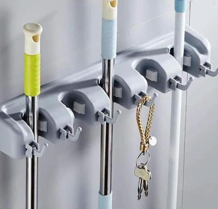 - حل عملي للتخزين: حامل يثبت على الحائط مع 5 فتحات و6 خطافات مصممة لحمل المقشات والمساحات الموب/الشرشوبة وجاروف الغبار والفوط والإسفنجات والفرش وحتى أدوات تناول الطعام، مما يحافظ على مساحتك مرتبة وخالية من الفوضى.