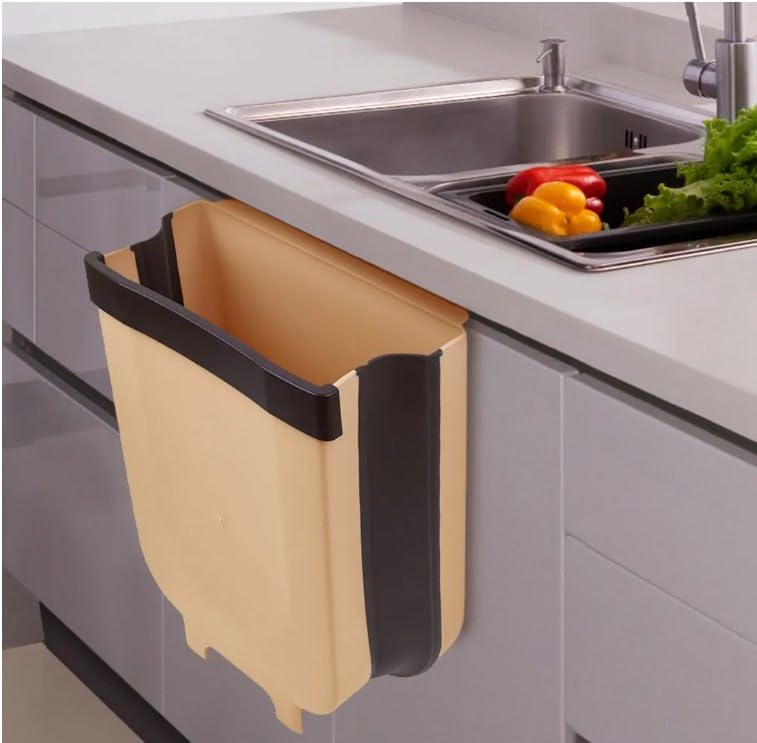 - SPACE-SAVING DESIGN: Wall-mounted kitchen waste bin that folds flat against the wall when not in use, perfect for small kitchens and tight spaces