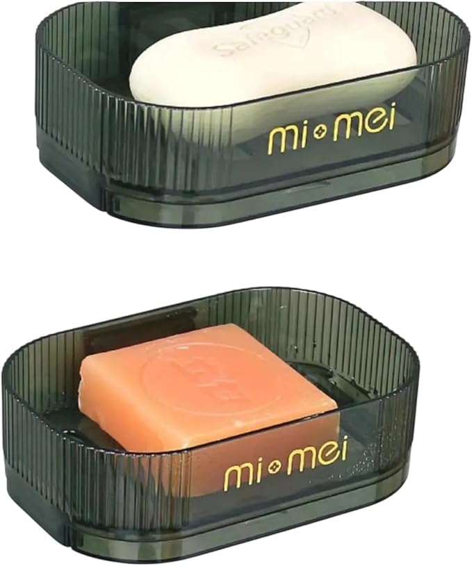 Spaceshoop - Wall-Mounted Double Soap Dish, Transparent Draining Tray, No-Drill Installation (Green)
