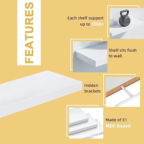 - ❥ Refresh your home: sleek and modern with white finish, breathe new life into any room! Contrast shelves at stunning height on the wall for a more energetic result or mount side by side for a clean streamlined look, give the illusion of a larger space in your home.