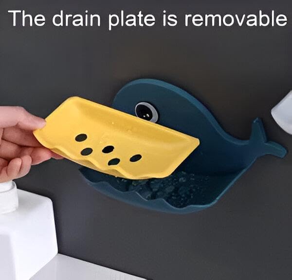 - This fish-shaped self-draining soap holder attaches to walls with strong adhesion silicone suction cups instead of puncturing holes, and features a removable silicone suction cup at the bottom of the tray. For best results, clean the suction cup before use, leave a tiny drop of water on the bottom, so the suction maintains high stickiness and the soap stays stable inside the tray even when the bathroom is humid.