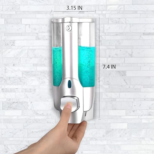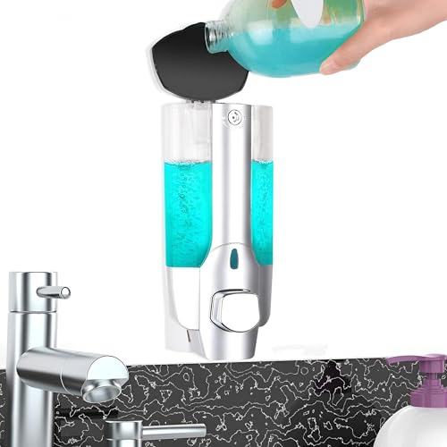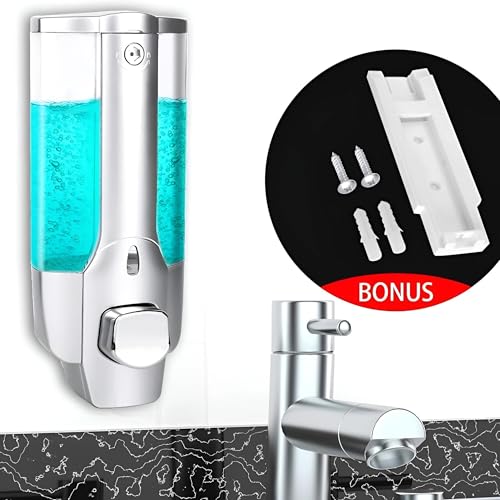 Generic - موزع صابون يثبت على الحائط - موزع سائل غسول الجسم قابل للتعديل مع قفل يدوي للشامبو واللوشن ومظهر فضي أنيق للحمام أو المطبخ أو المكتب