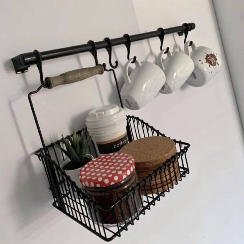 - Multi-Purpose Organization: Ideal for kitchens, pantries, or utility rooms to hang spatulas, ladles, whisks, oven mitts, and other essentials whilst the basket holds frequently used items