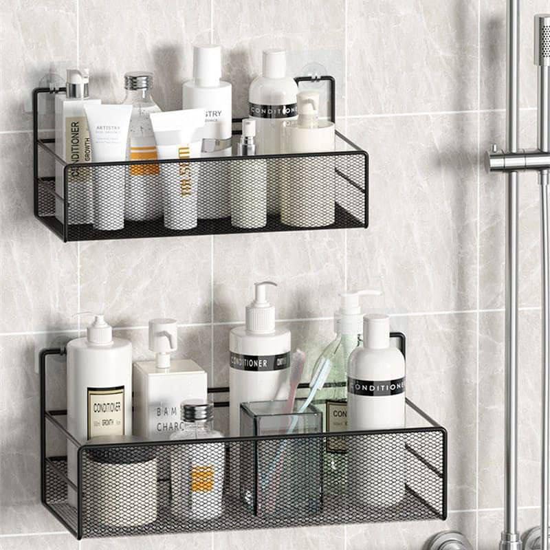 - تخزين منظم: توفر الأرفف السلكية الشبكية مساحة واسعة لترتيب وعرض أدوات النظافة ومستحضرات التجميل وغيرها من أساسيات الحمام.