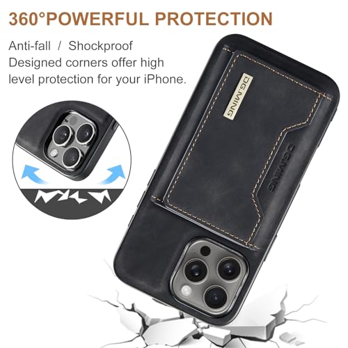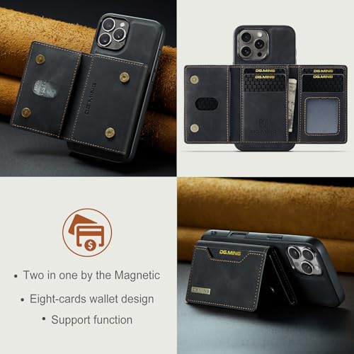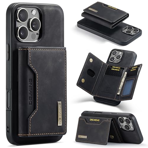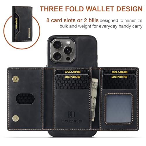 FASCINATION - Wallet Case Compatible with iPhone 16 Pro Max, DG.MING Premium Leather Phone Case Back Cover Magnetic Detachable with Trifold Wallet Card Holder Pocket for iPhone 16 Pro Max (Black, iph 16 pro max)