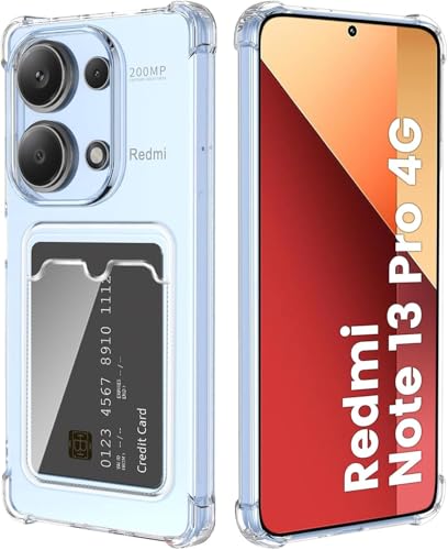 Generic - Wallet Clear Case for Redmi Note 13 Pro 4G / Poco M4 Pro 4G, Card Slot, Slim Fit Protective Soft TPU Bumper Cover with Cute Card Holder - Clear