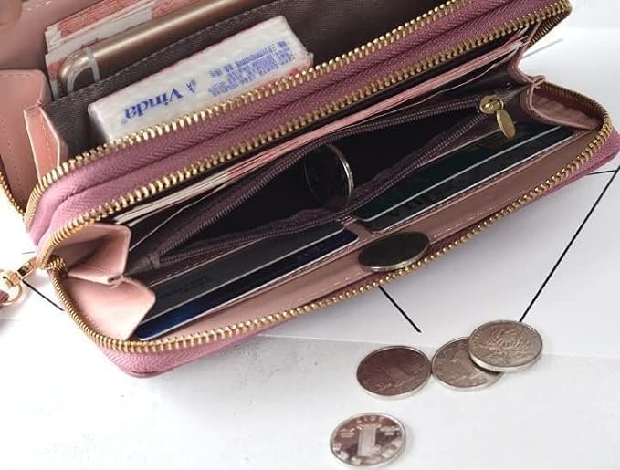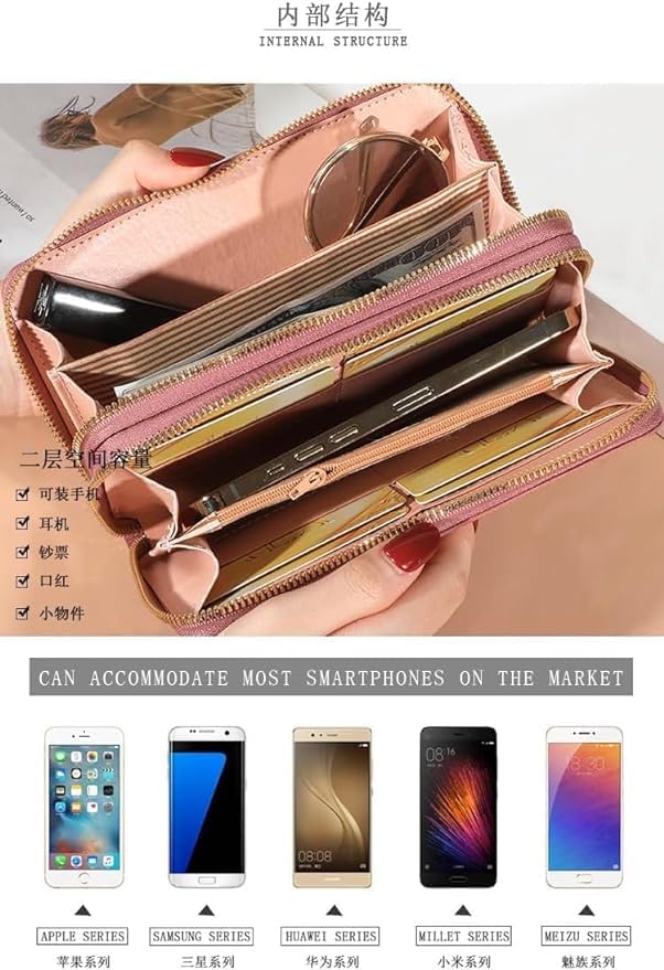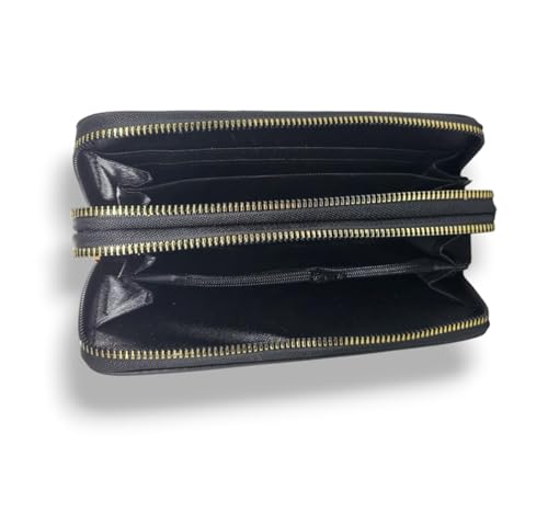 Generic - محفظة حريمي 2 سوستة ذات سعة كبيرة وسوستة مزدوجة لليد بتصميم كوري مبتكر تصلح للموبايل وحامل كروت وشنطة يد جودة ممتازة أسود بولي يوريثين