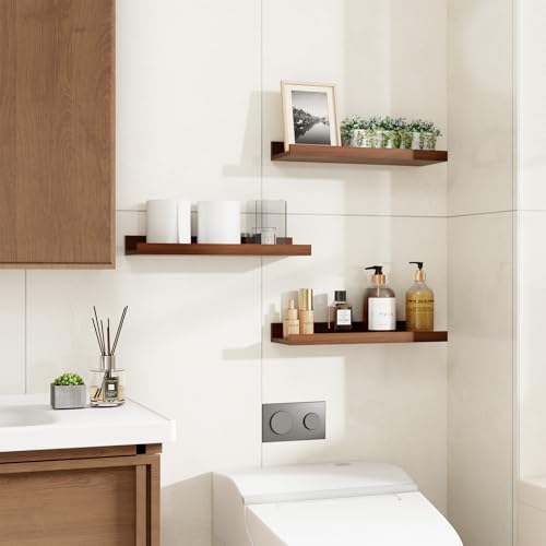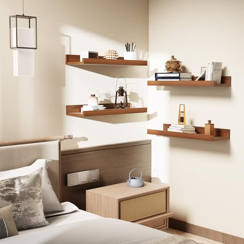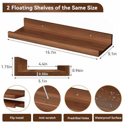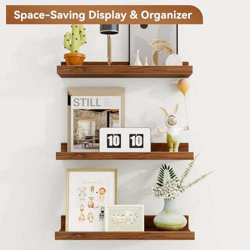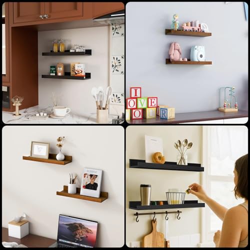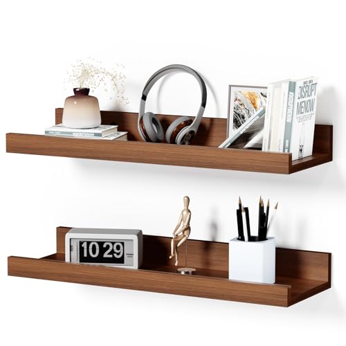 - 【Sleek Minimalist Design】With clean lines and a modern walnut finish, these picture ledge shelves blend seamlessly with a wide range of décor styles—from modern and contemporary to rustic and traditional—adding a polished, organized look to any room. Perfect for the living room, bedroom, bathroom, kitchen, hallway, or corner spaces.