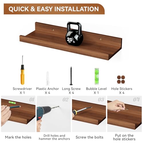 - 【Easy & Hassle-Free Installation】Enjoy a stress-free setup with all mounting hardware and clear instructions included. These floating shelves are designed for quick and effortless wall mounting, allowing you to upgrade your space in just minutes.