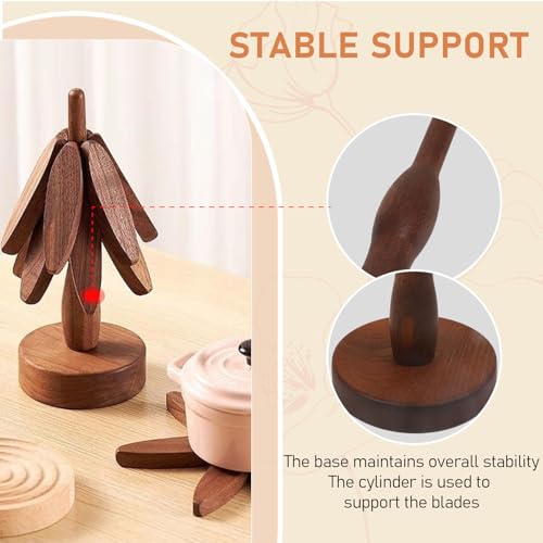 Heaocv - مفرش طاولة بتصميم شجرة الجوز، حامل أواني بتصميم خشبي قابل للطي للأطباق الساخنة، مضاد للانزلاق وعازل للحرارة، اوف وايت