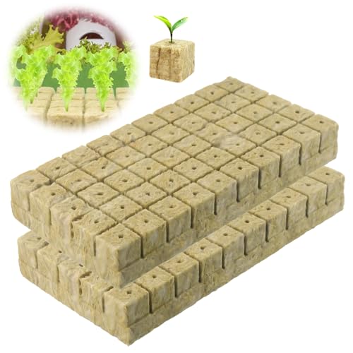 WANDGU - Pack of 100 Rock Wool Cultivation: Rock Wool Cubes, Rock Wool Propagation Mat, Plugs Soil Seedling Block, Hydroponic Seedling, Rock Wool Leaf Cultivation for Cuttings, Propagation, Strong