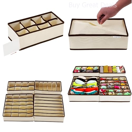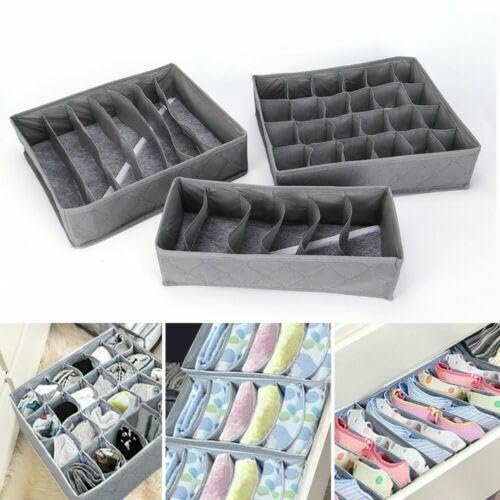 - 4 versatile storage boxes with multiple cells keep socks, scarves, leggings, and accessories neatly separated while saving precious closet space daily.