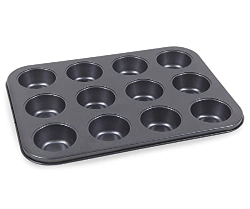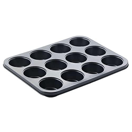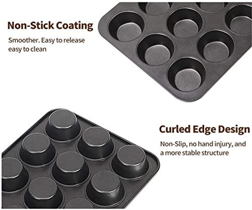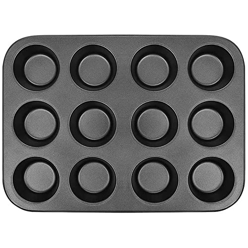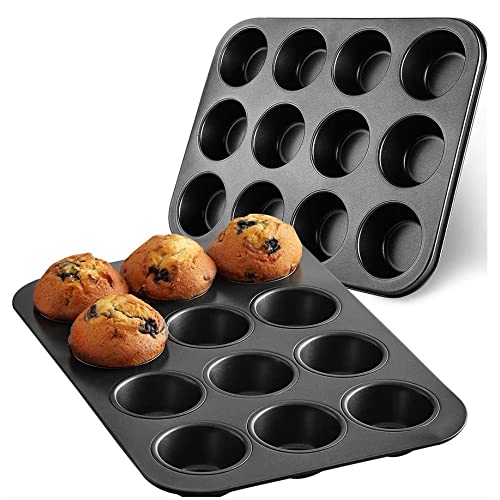 WARESHARK - صينية للخبز سعة 12 كوب غير لاصقة، لصنع المافن والكيك، مصنوعة من صلب متين بتصميم عميق لتوزيع الخبز بسهولة ومتينة للاستخدام الطويل من ويرشارك