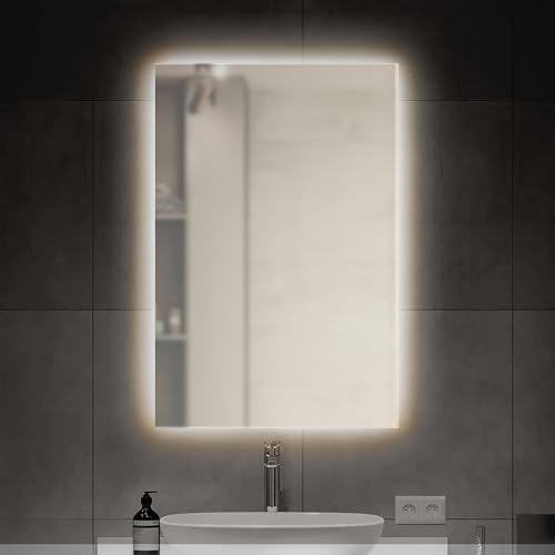 Generic - مراية بإضاءة ليد دافئة مقاس 110 × 70 سم - مراة كبيرة مضيئة للحمام والتزيين مع إضاءة محيطة ناعمة، مراية ديكور عصرية تثبت على الحائط للمكياج والعناية الداخلية للمنزل