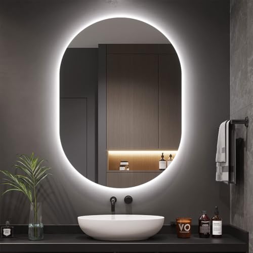 - تصميم أنيق: مراية بيضاوية الشكل بإضاءة خلفية ليد دافئة، تخلق توهجًا ناعمًا ومريحًا، مثالية للحمامات العصرية، ووحدات الزينة، والمساحات الداخلية.