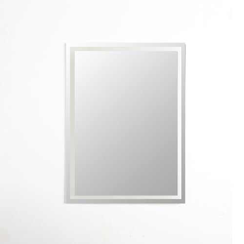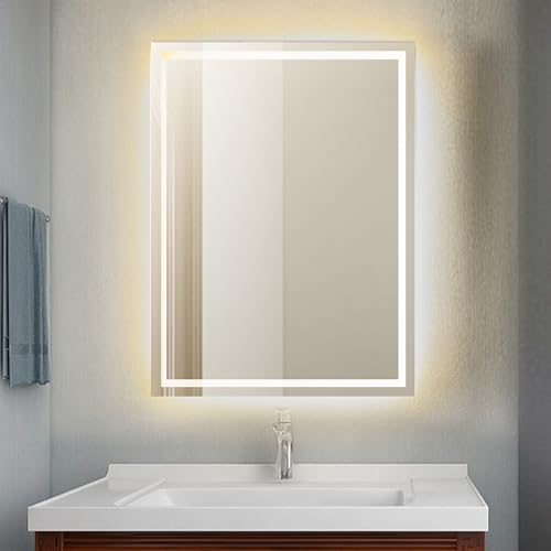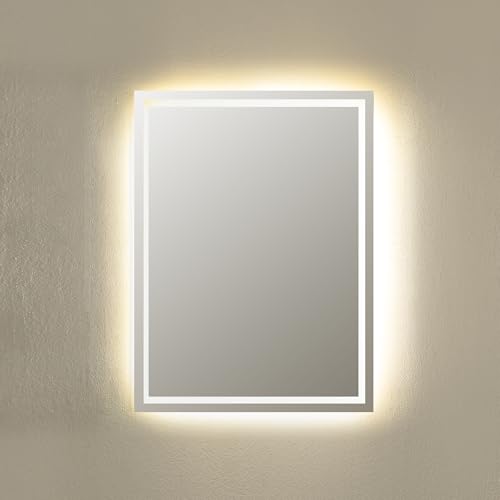 - ELEGANT BACKLIT DESIGN: Large rectangular mirror featuring warm LED backlighting that creates a soft ambient glow around the perimeter, perfect for enhancing bathroom and vanity spaces with modern sophistication