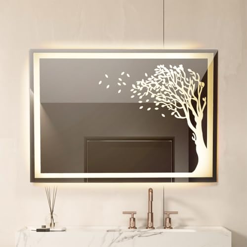 - ELEGANT DESIGN: Modern frameless LED mirror featuring a beautiful tree design with falling leaves, adding a decorative artistic touch to your bathroom, bedroom, or dressing area