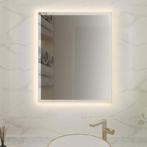 - LED BACKLIT DESIGN: Modern vanity mirror features warm white LED backlighting that creates a soft ambient glow around the perimeter, perfect for bathrooms and bedrooms whilst providing excellent illumination for daily grooming tasks